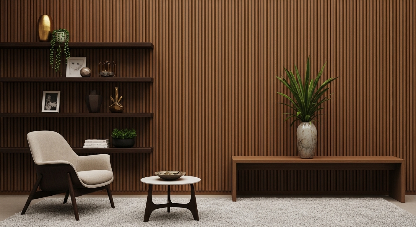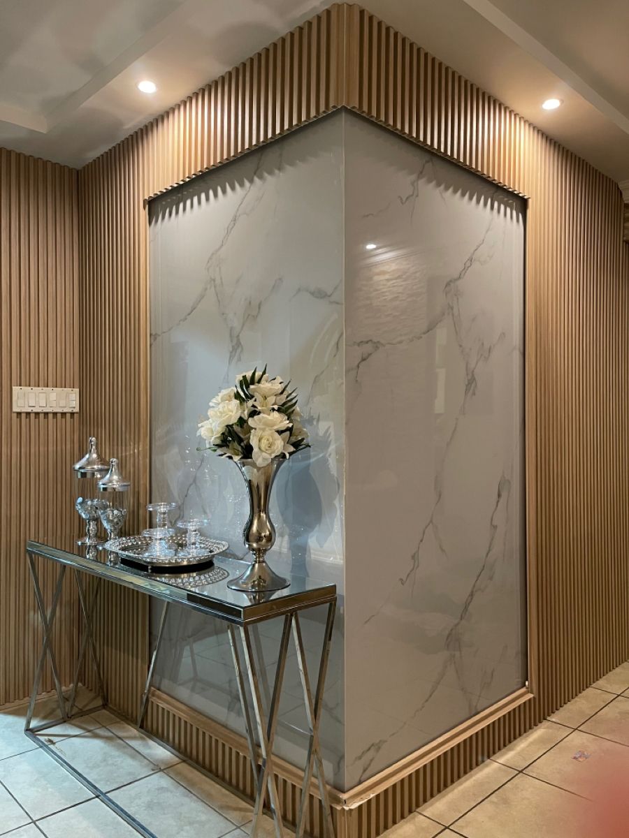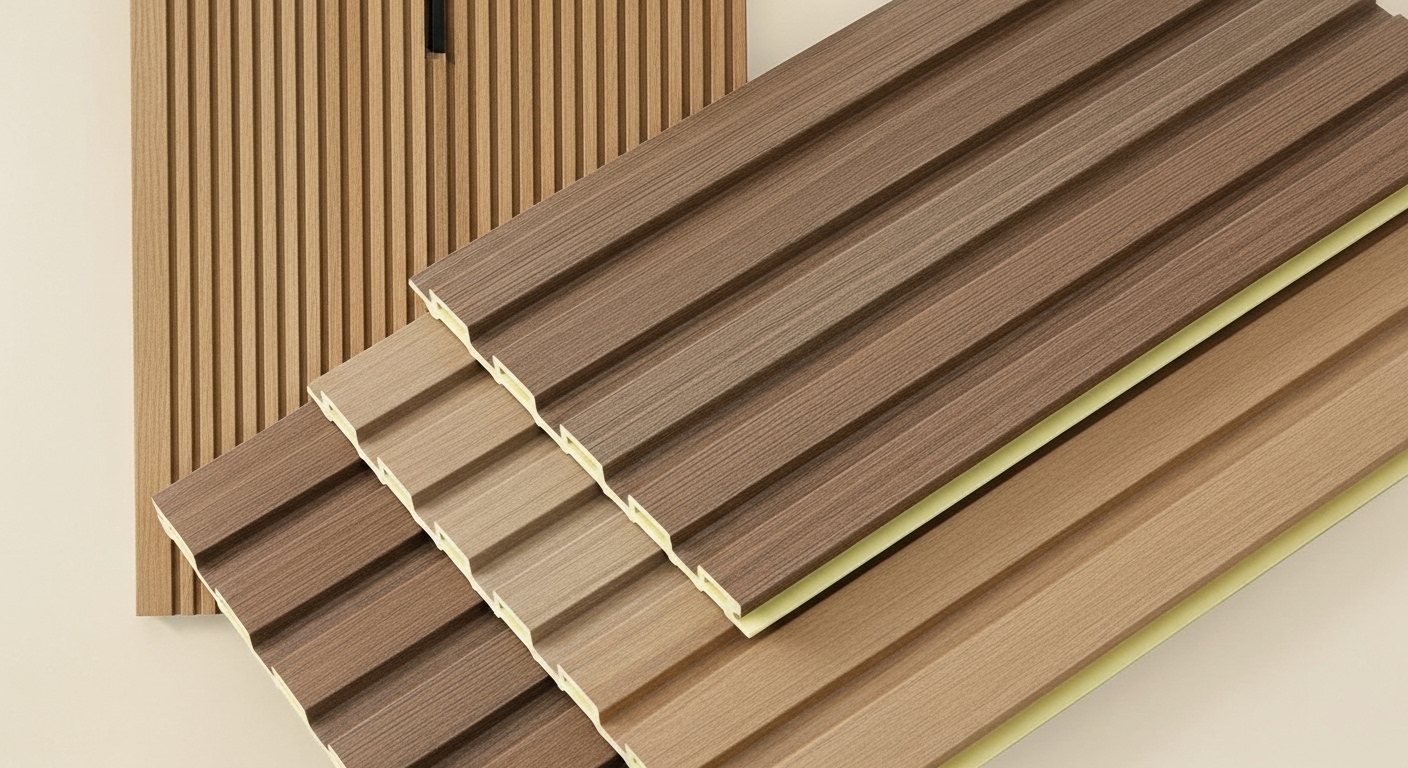 ألواح تجمع بين ألياف الخشب الطبيعية والبلاستيك المعالج لتكوين سطح أنيق مقاوم للعوامل الداخلية. تمنح مظهرًا فاخرًا بملمس طبيعي يناسب المساحات العصرية.